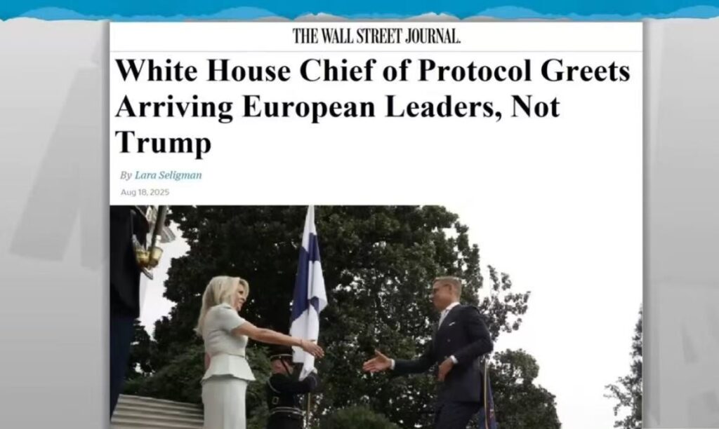 另外,8月15日,“伟大领袖”亲自在机场跑道上,铺上红地毯,鼓掌欢迎普京,长时间与普京亲切握手,满脸欢笑。而在8月18日,则只是让白宫礼仪主任迎接北约和欧盟领导人。可见在川普心目中,谁亲谁疏。
